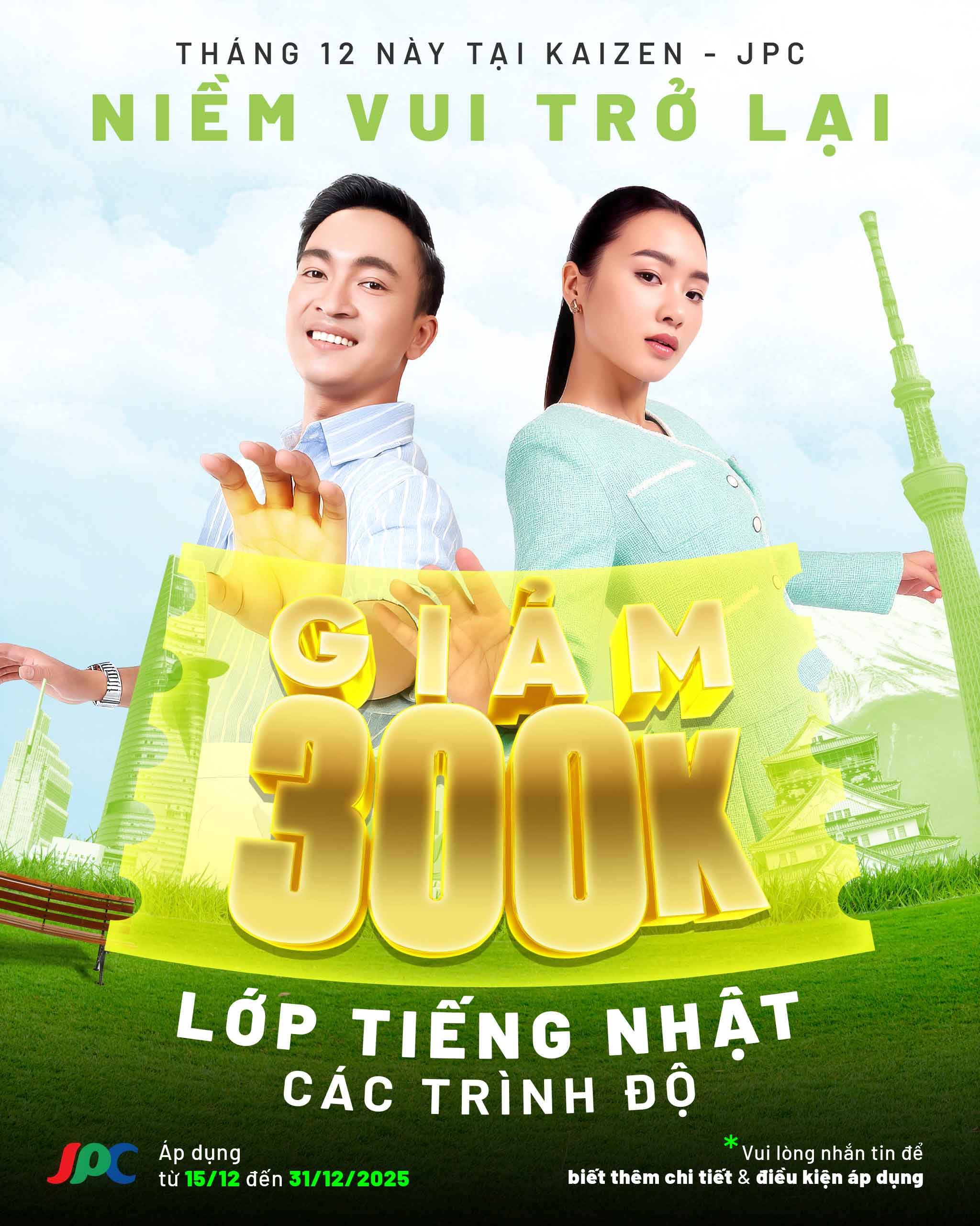 GIẢM NGAY 300k HỌC PHÍ cho tất cả học viên đăng ký mới lớp tiếng Nhật các trình độ tại Kaizen - JPC, chương trình áp dụng từ 15/12 - 31/12/2025.
